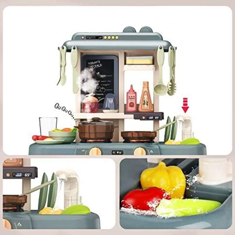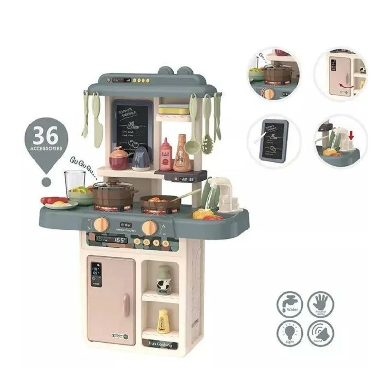 Модерна детска кухня със светлинни и звукови ефекти, котлони, фурна и течаща вода. Реалистична игра, която развива въображението и фината моторика.