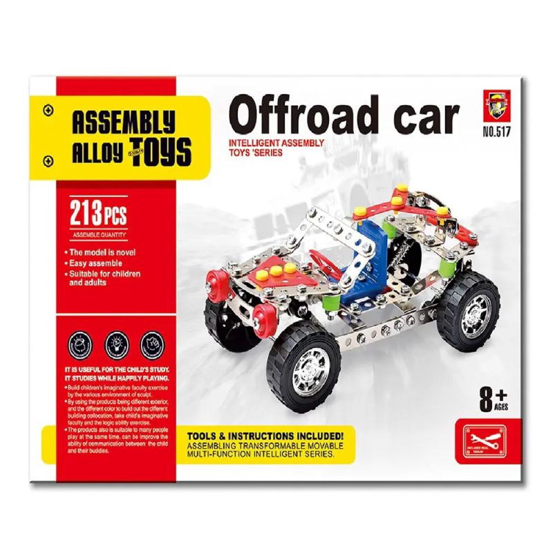 Металният конструктор Offroad Car е образователен комплект за сглобяване на високопроходим джип с реалистичен дизайн и подвижни елементи. Със своите 213 части той предлага по-предизвикателно и ангажиращо сглобяване, което развива логическо и инженерно мислене.