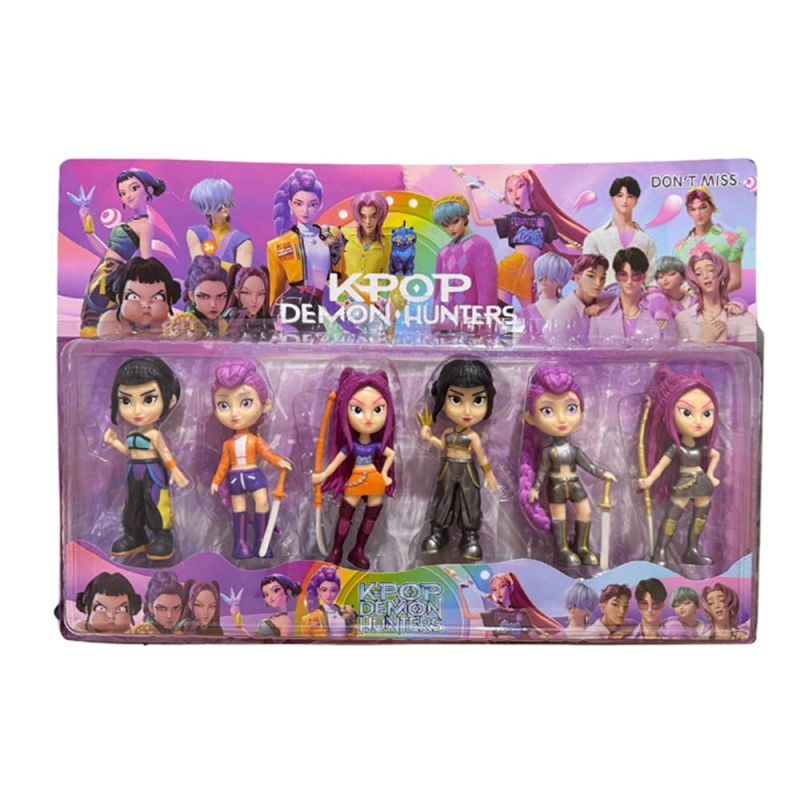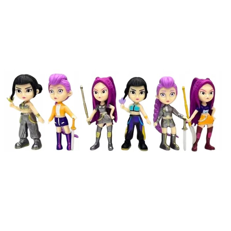 Комплектът KPOP Demon Hunters включва 6 детайлни фигурки, вдъхновени от модерния K-pop и аниме стил. Всяка фигурка е със собствена визия, прическа и аксесоари, което позволява създаването на различни истории и ролеви сценарии.