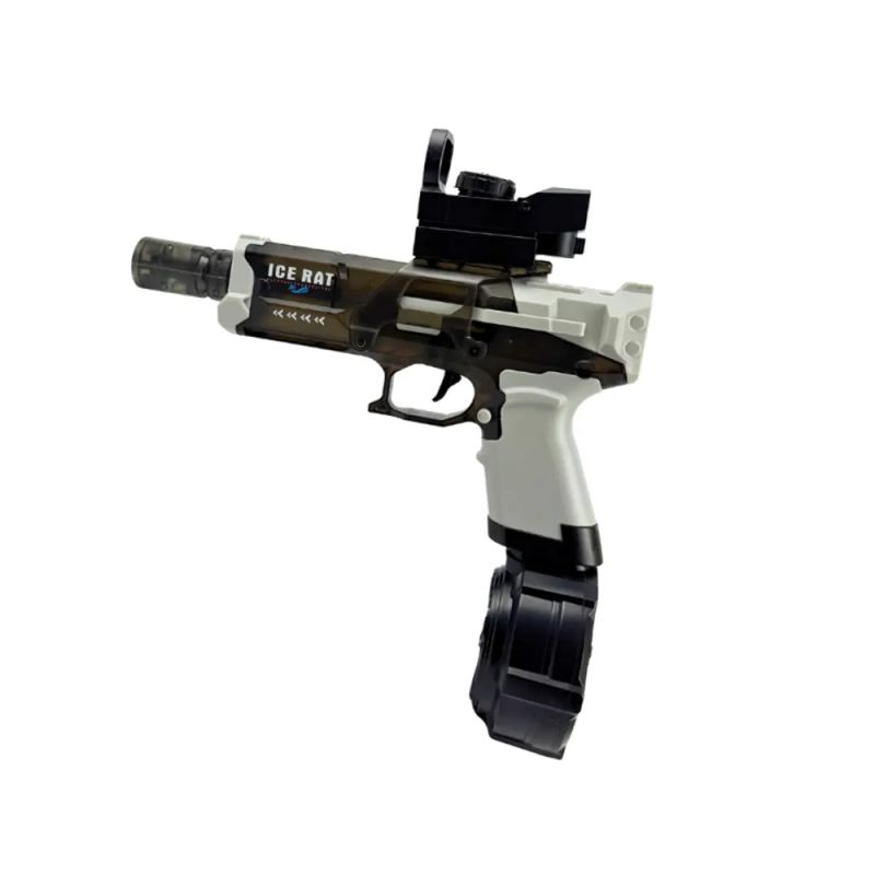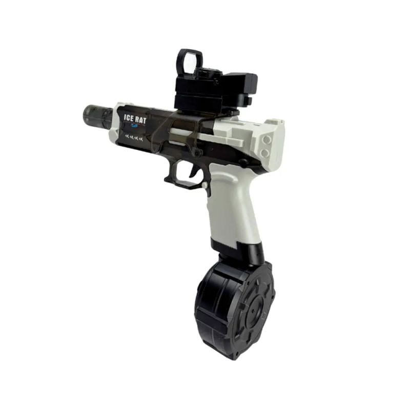 Играчка електрически пистолет Gel Blaster Ice Rat с водни гел топчета, LED ефект и автоматичен режим на стрелба. Подходящ за динамична игра на открито.