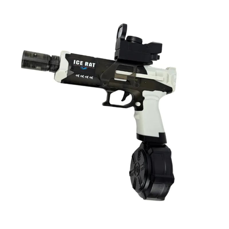 Играчката Ice Rat Gel Blaster е модерна електрическа играчка пистолет, която използва водни гел топчета (water gel balls). Моделът е с футуристичен дизайн и прозрачни елементи, които придават по-реалистичен ефект по време на игра.