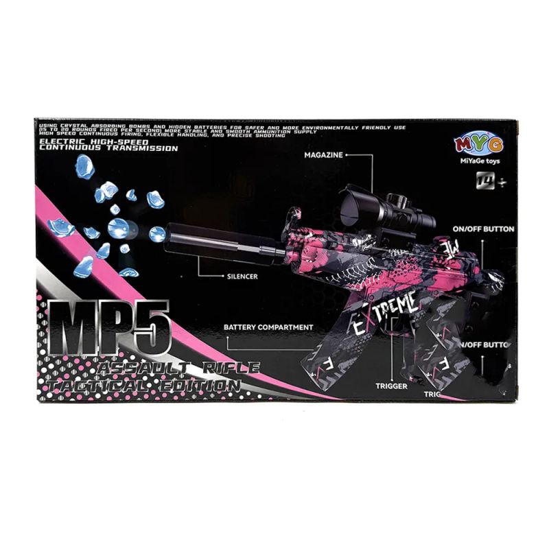 Играчката MP5 Gel Blaster Tactical Edition е модерна електрическа играчка автомат, създадена за динамична и активна игра на открито. Моделът използва специални водни гел топчета, които се активират във вода и след употреба се разпадат, без да оставят замърсяване.