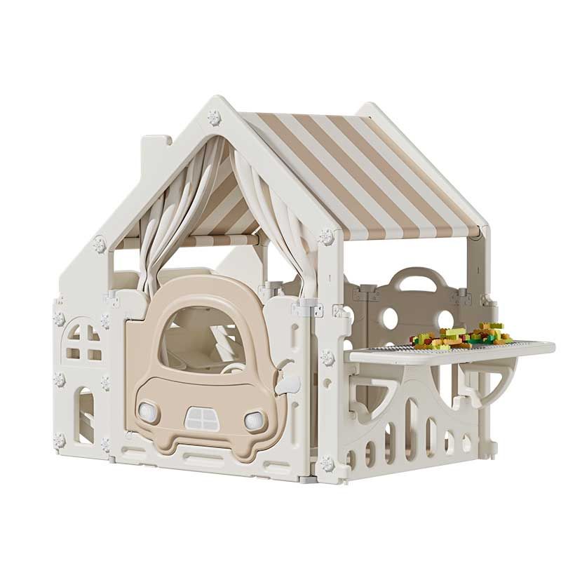 Пластмасова детска къщичка за игра с маса за конструктори – кафява