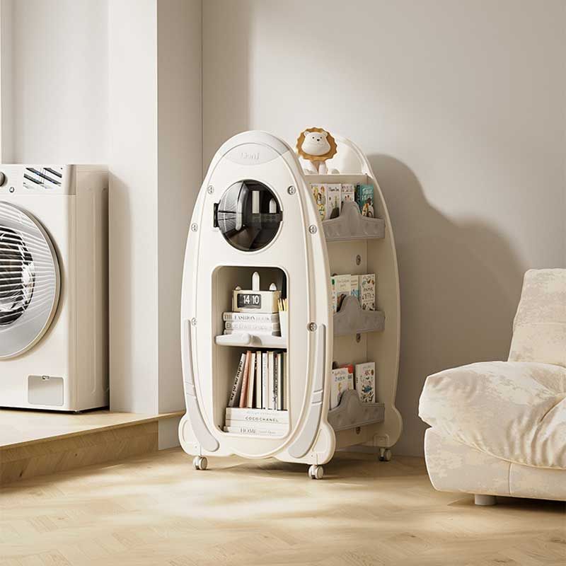 Детска библиотека с въртящ се дизайн и място за съхранение на книги и аксесоари, сива