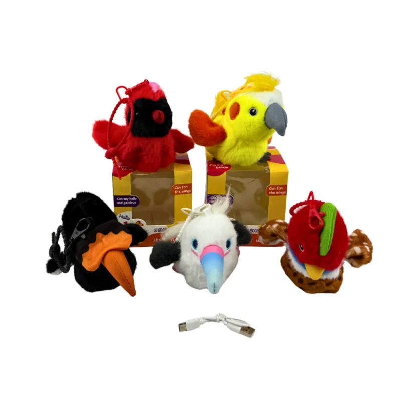 Интерактивна плюшена птичка, която реагира на звук и повтаря думи. Движи се, презарежда се с USB и се предлага в различни модели на случаен принцип.