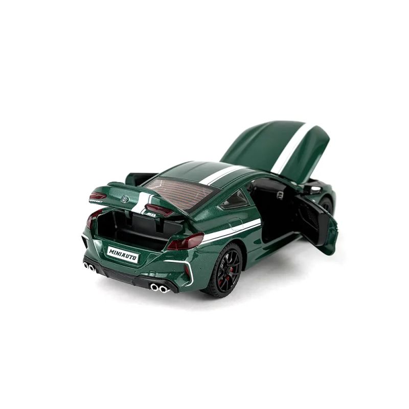 Този впечатляващ модел на BMW M8 Competition в мащаб 1:24 е създаден за хора, които търсят не просто играчка, а усещане за истински спортен автомобил в миниатюра. Съчетавайки агресивен дизайн и елегантност, той се откроява със своя дълбок зелен металик и прецизна изработка.