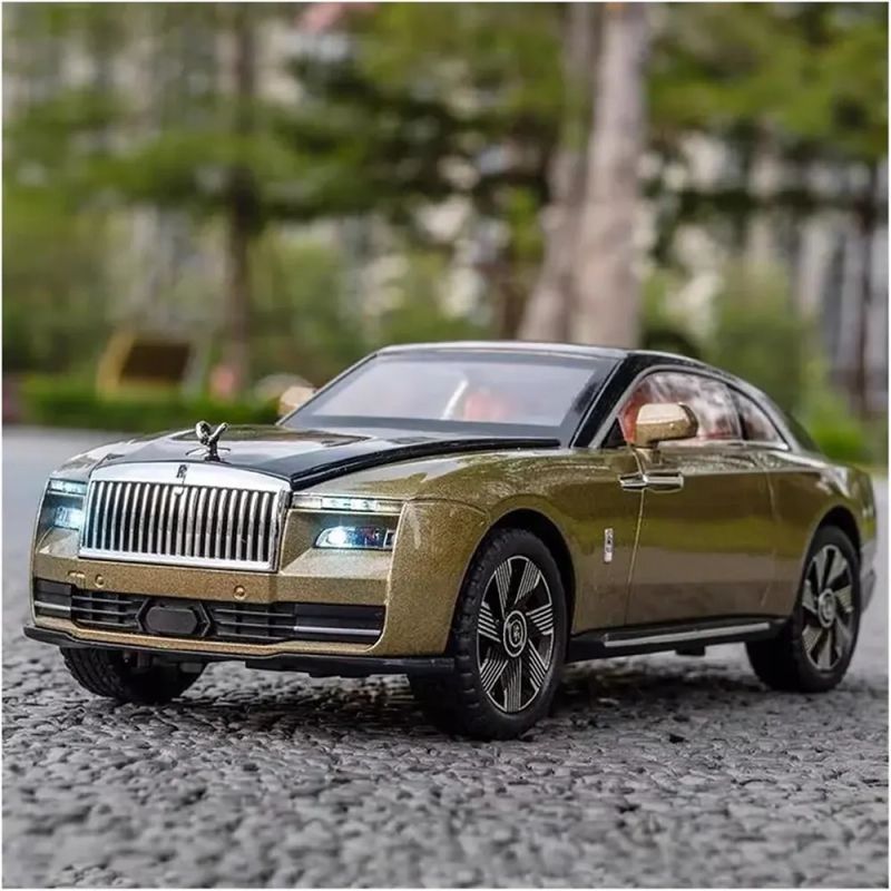 Изискан модел Rolls-Royce Spectre 1:24 в уникален златисто-зелен цвят с отварящи се врати, капак и багажник – модерна визия и престиж.