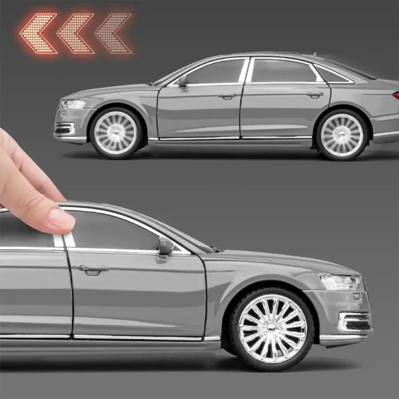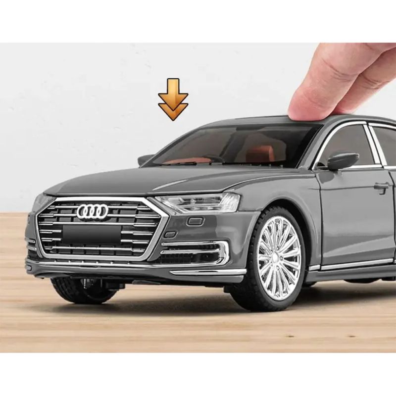 Стилен модел Audi A8 в сив цвят, мащаб 1:24 – метална изработка и прецизни детайли за истински ценители.
