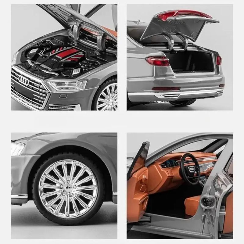 Метална кола Audi A8 1:24 сив луксозен седан с детайлен интериор